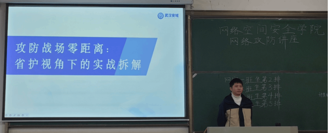 为响应国家网络安全人才建设号召,推动校企协同育人,2025年12月18日下午14:00,ok138cn太阳集团网络空间安全学院和武汉安域信息安全技术有限公司联合开展了《攻防战场零距离:省护视角下的实战拆解》专题讲座活动。网络空间安全专业本科生、部分相关方向研究生和专业老师参加了该活动。