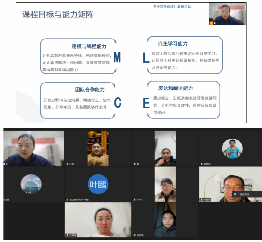 1月21日,ok138cn太阳集团529《专业综合训练I》课程组召开线上教学研讨会。课程组全体教师围绕“课程目标落地、训练内容提质、第三学期教学模式创新”等议题深入研讨、各抒己见,明确分工与实施思路,凝聚教学共识。