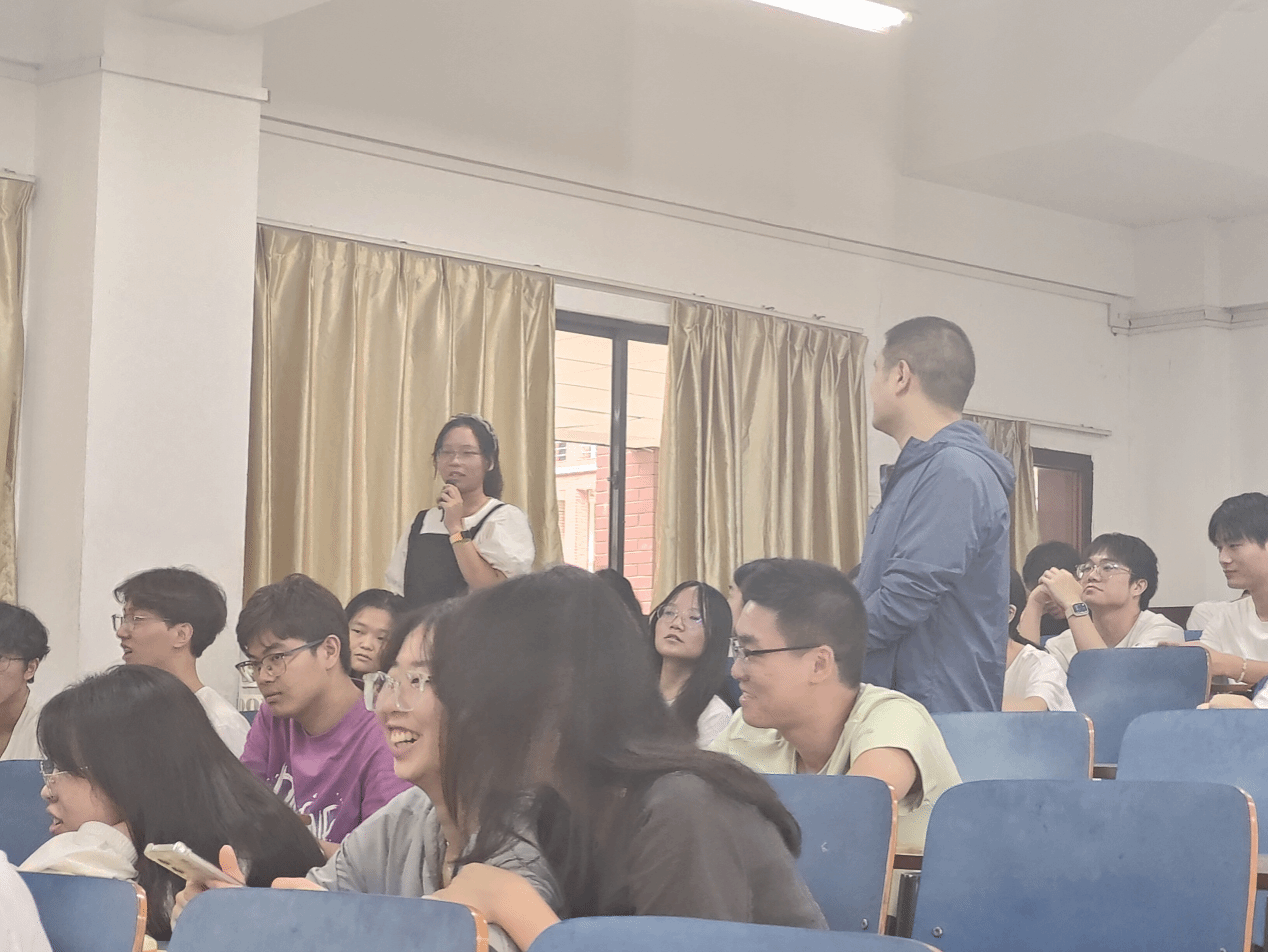 会议接近尾声时进行了学生提问环节,由学生们拿上话筒向自己感兴趣的导师提问。同学们都很积极,畅所欲言,表达了内心的疑问。被提问的导师也十分耐心地一一解答了同学们的疑惑。