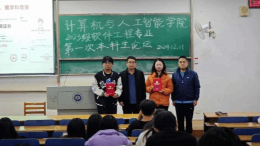 报告结束后,参会的同学们积极与梁煊煊和卢佳进行了互动交流,气氛十分热烈。最后,向书记为两位同学颁发证书,并发表总结发言。他着重强调了勤奋学习的关键意义,指出在当下形势中,同学们理应自觉按时上课,端正自身学习态度。他提到,平凡之人只要秉持不懈努力、具备强大执行力,加之明确的学习路径与方法,同样能够在学术及职业道路上绽放光彩。