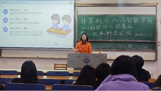 2024年12月1日下午,软件工程系在YG03_118教室成功举办了本科生论坛。此次论坛由叶鹏老师主持,向涛副书记、易凡老师出席,全体2023级软件工程专业学生参加。
